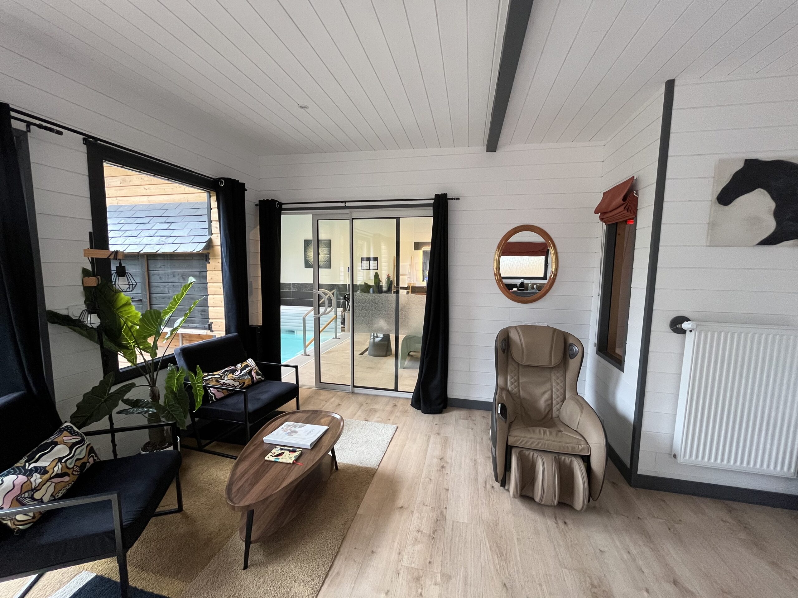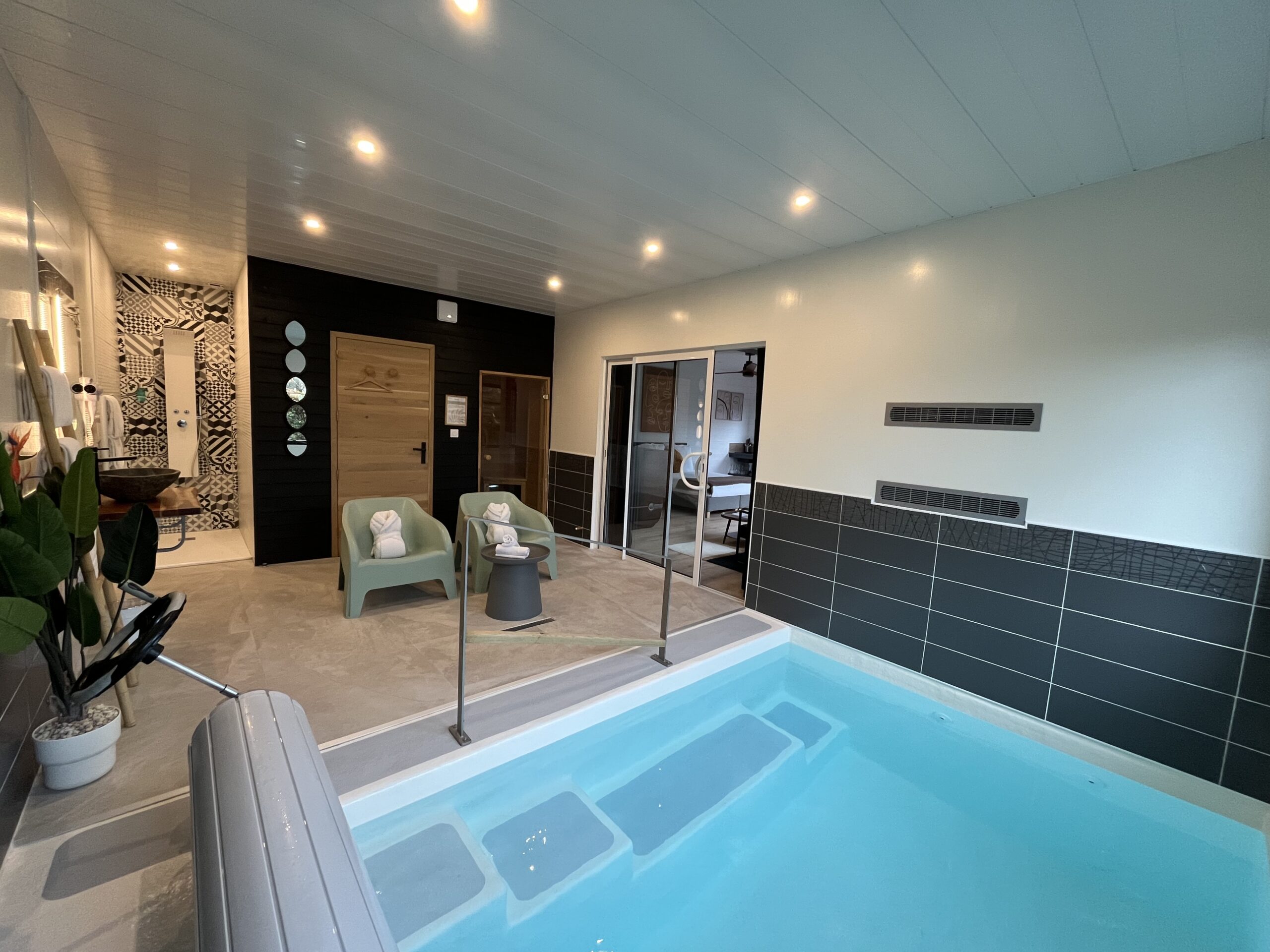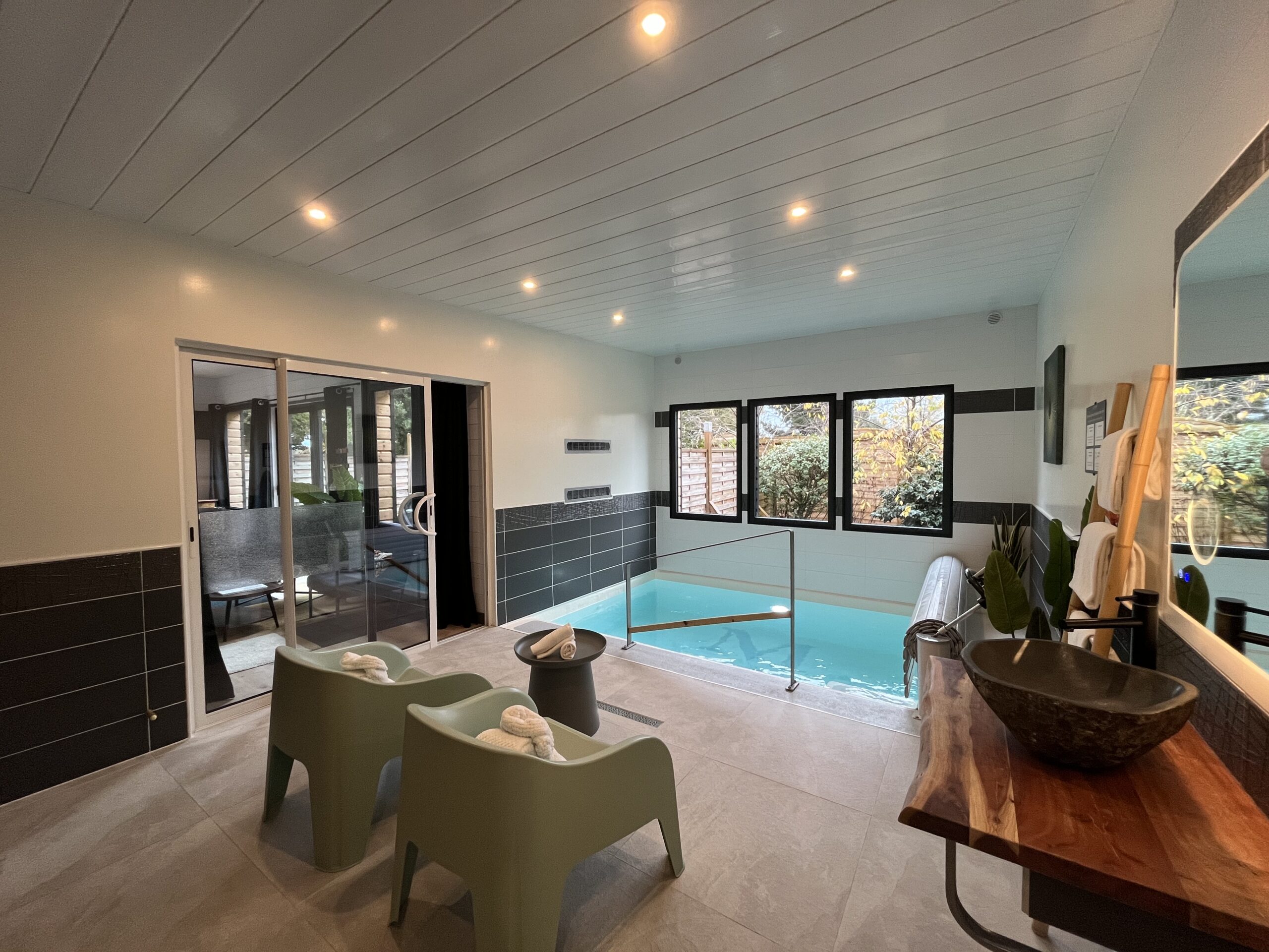 Entre le sauna finlandais, le fauteuil massant et la piscine, vous ne verrez pas le temps passer dans cette suite entièrement équipée et pensée pour votre bien-être.