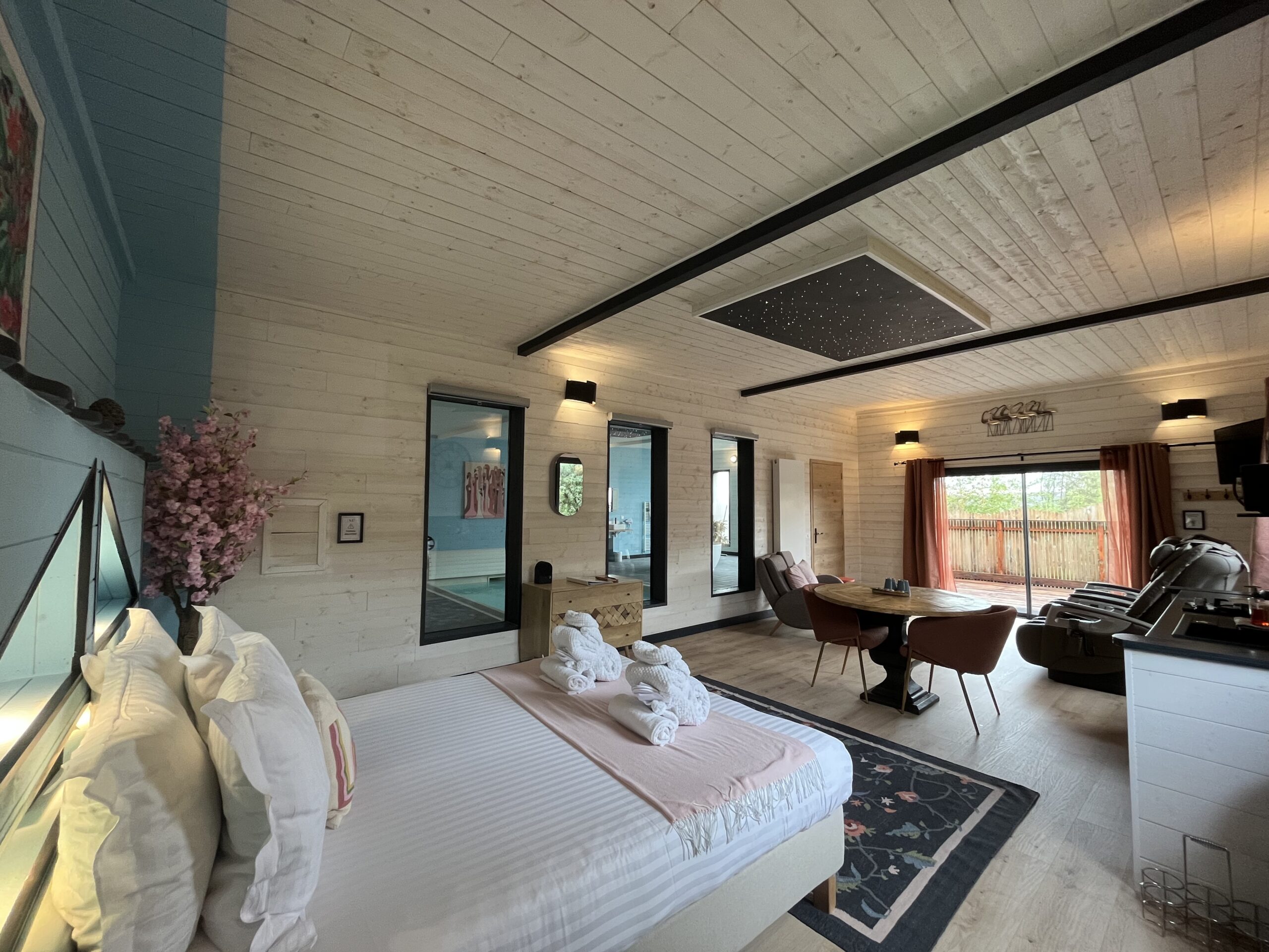 La spacieuse suite de Hatti est l’endroit rêvé pour un séjour idyllique en Finistère. Venez célébrer une occasion particulière et marquer l’occasion en vous offrant une des suites les mieux équipées du Domaine. Sauna, hammam et piscine vous attendent pour vous faire passer un moment de détente hors du temps. Prélassez vous dans les deux fauteuils massants en écoutant votre musique préférée. Tous les équipements sont présents dans cette suite !