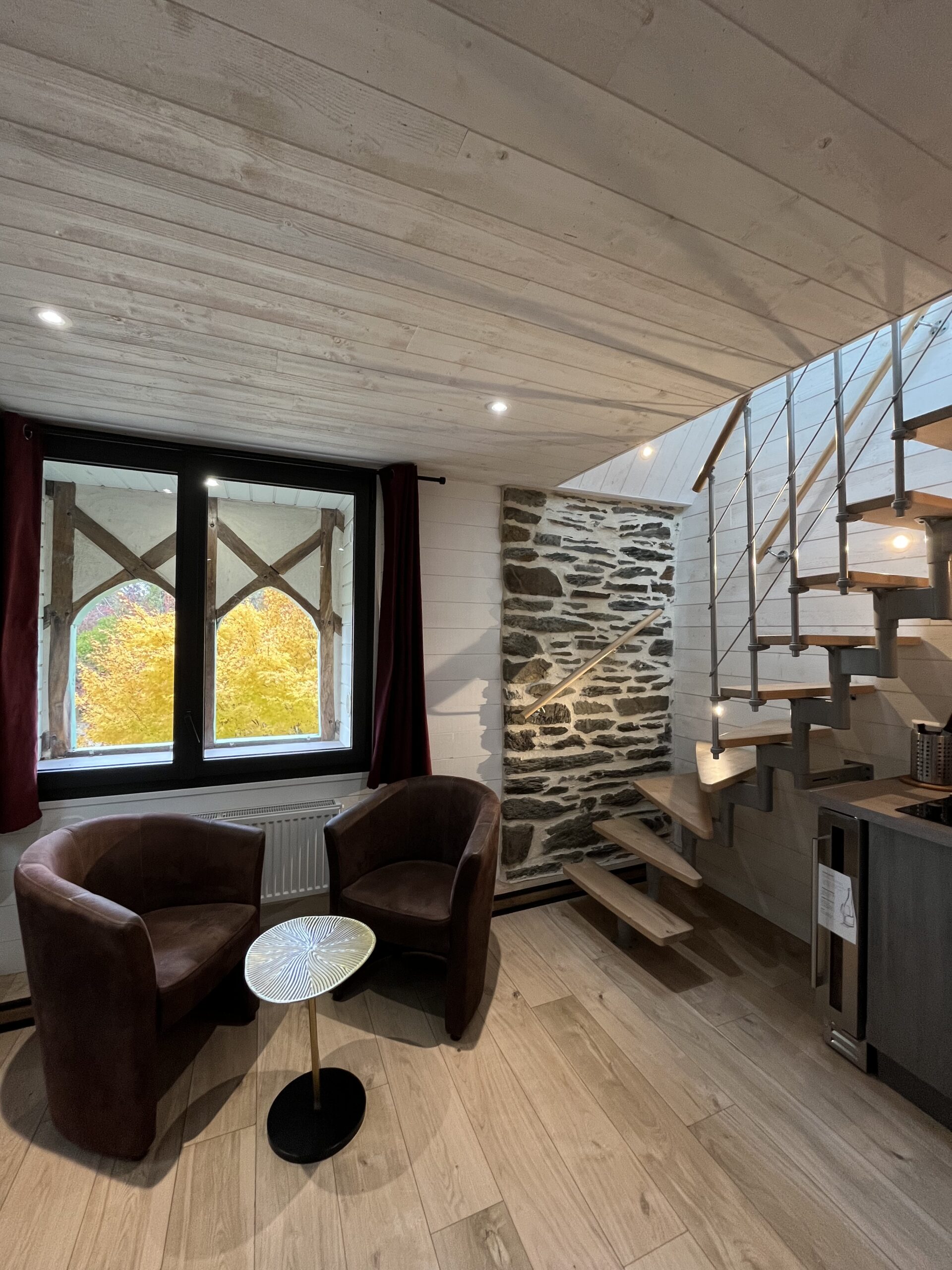 La suite de Rosily du Domaine de Meros offre également une cuisine équipée, un coin chambre perché au deuxième étage avec vue sur l’ensemble du domaine, ainsi qu’une belle terrasse où vous pourrez vous prélasser à deux et profiter de ce cadre enchanteur.